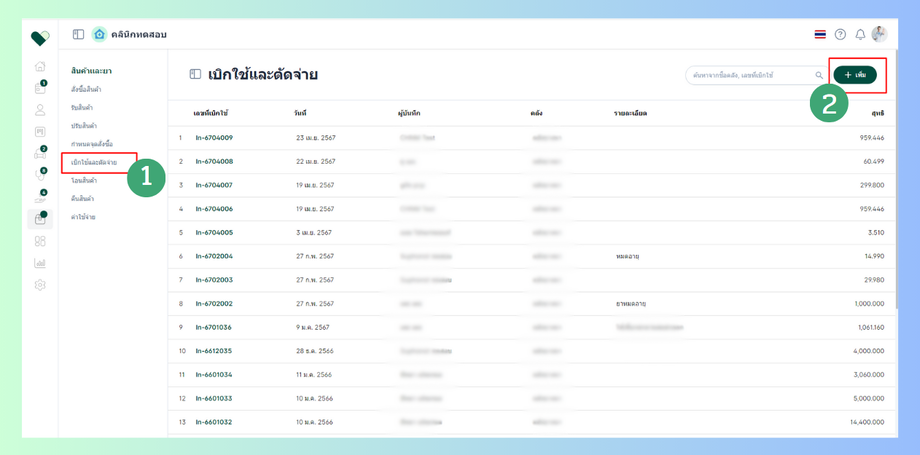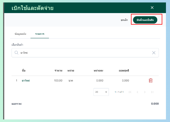 เลือกหัวข้อสินค้าและยา > เบิกใช้และตัดจ่าย