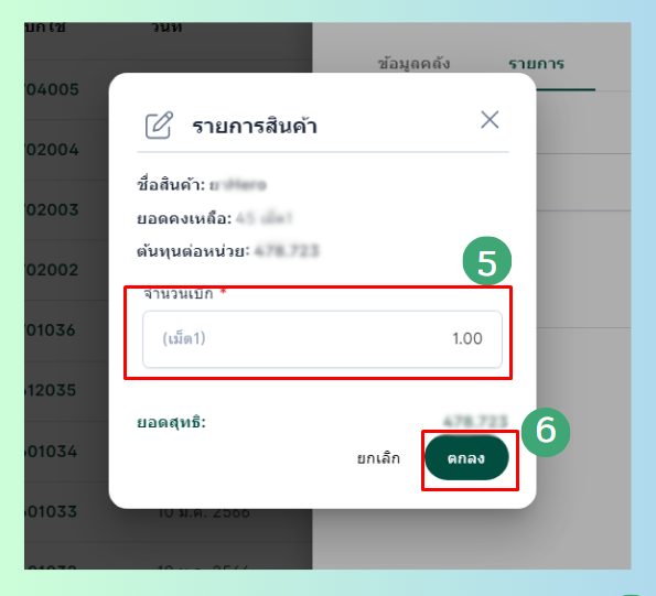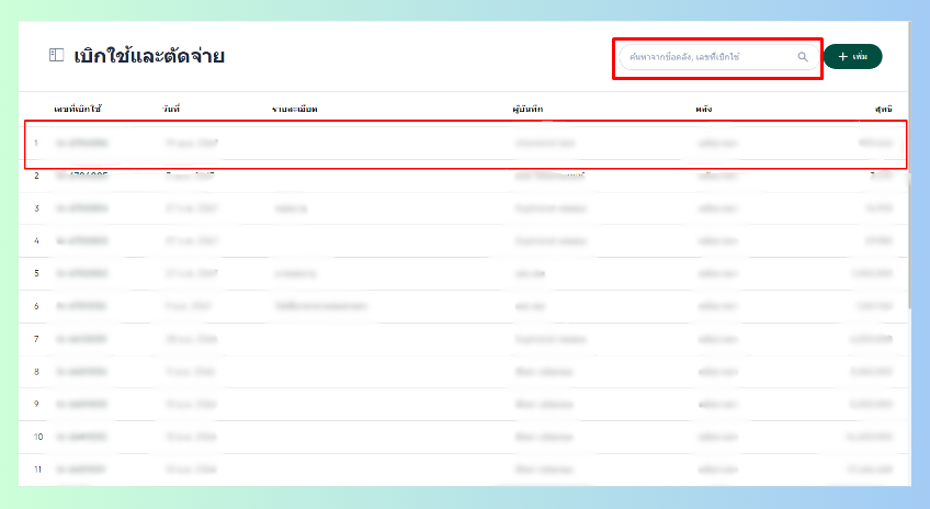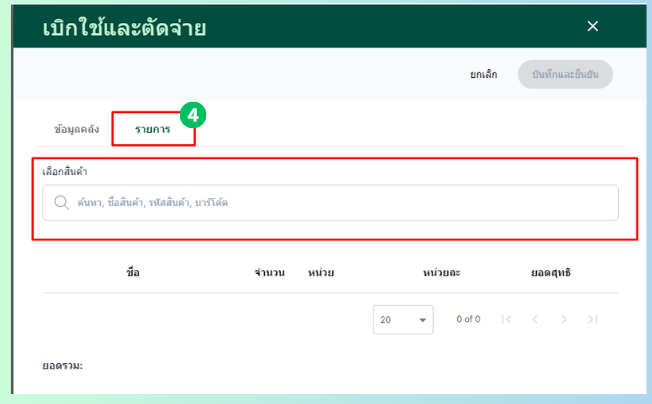 รายการ ในส่วนของรายการ กดค้นหารายการสินค้าที่ต้องการเบิก