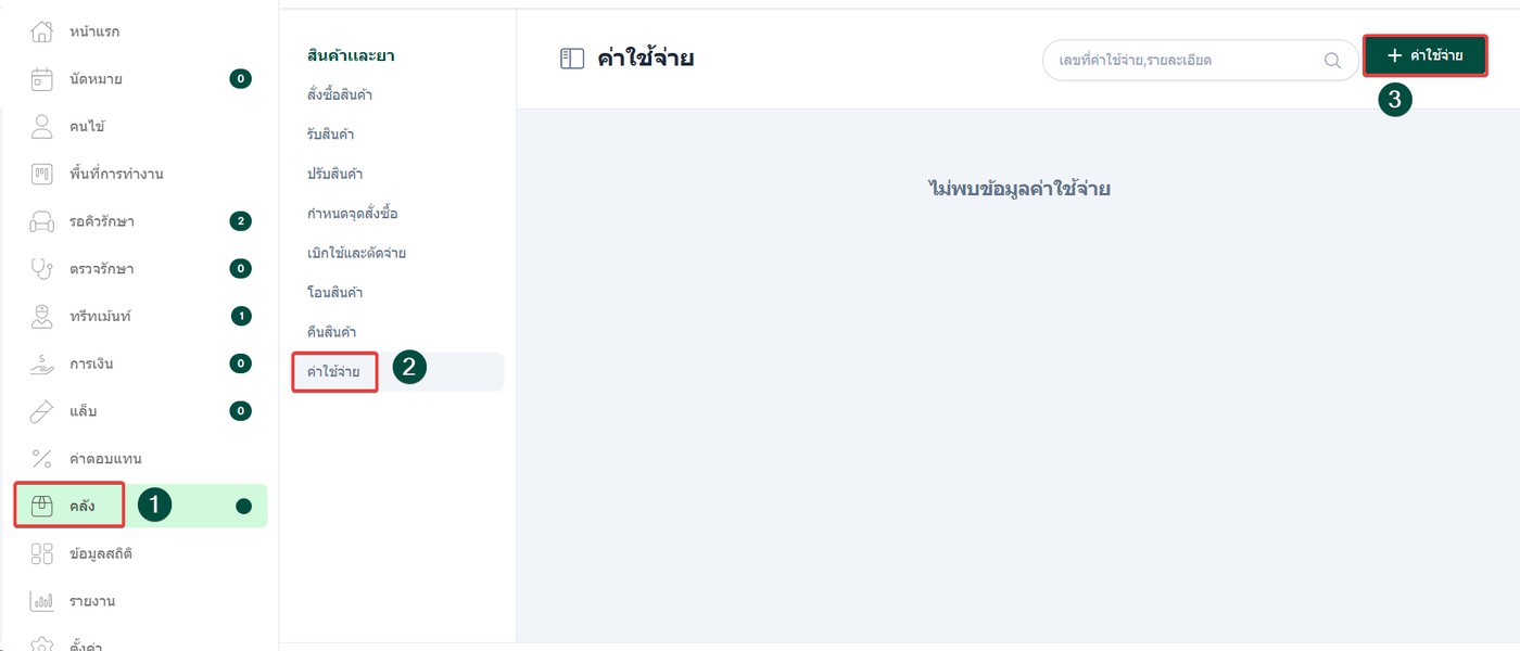 เลือกหัวข้อ สินค้าและยา จากนั้นเลือก ค่าใช้จ่าย
