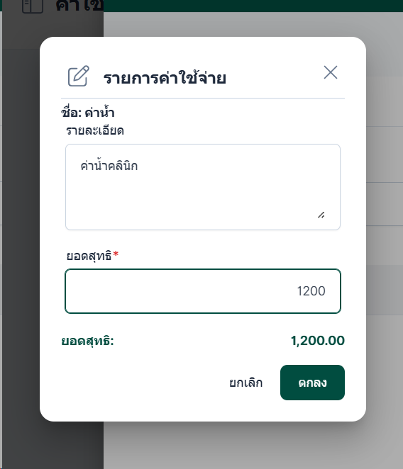 เมื่อเลือกเพิ่มรายการค่าใช้จ่าย ยกตัวอย่าง ค่าน้ำ ระบบจะแสดงหน้าต่างดังรูปต่อไปนี้