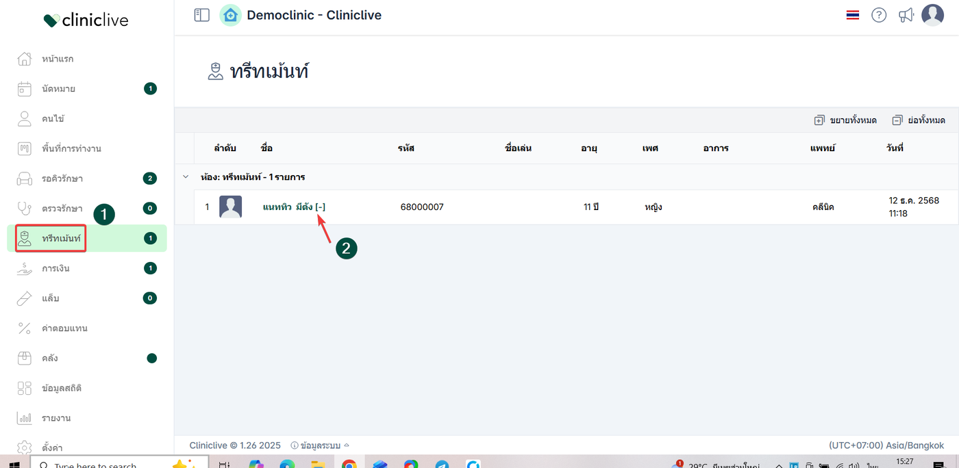 ระบบจะเข้าสู่หน้ารายละเอียดการรักษาของผู้ป่วยรายนั้น